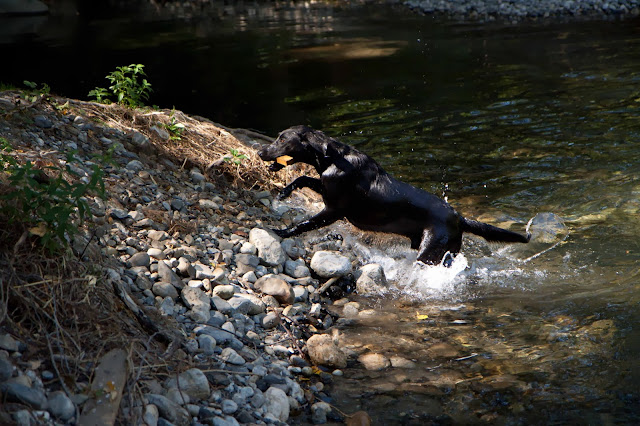 | We went up to the mountain to Puivert so that I could have a swim in the lake there, only to discover that Chiens (that's me) aren't allowed in. |